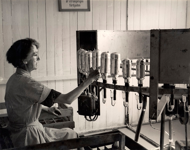 Kvinna på Trelleborgs glasbruk Termosavdelningen.