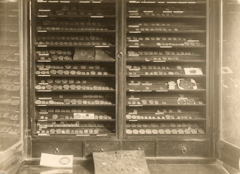 Skåp med myntsamling, Mina gamla mynt liggande i myntskåpet, Olof Christoffersson Negativnummer 1987-11:7-8.