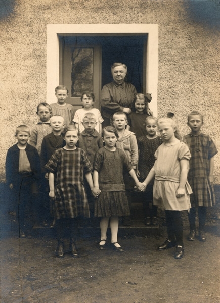 Skolklass, på trappa, lärare + 13 elever negativ 70:3177 18x24.