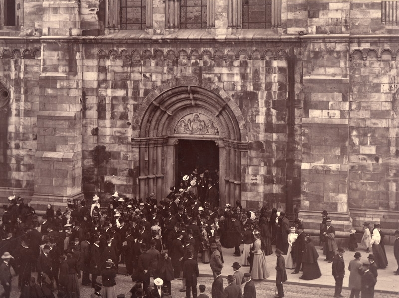 Prästmötet i Lund 1900, folksamling utanför Lunds domkyrka, foto: Lina Jonn Lund,4727.