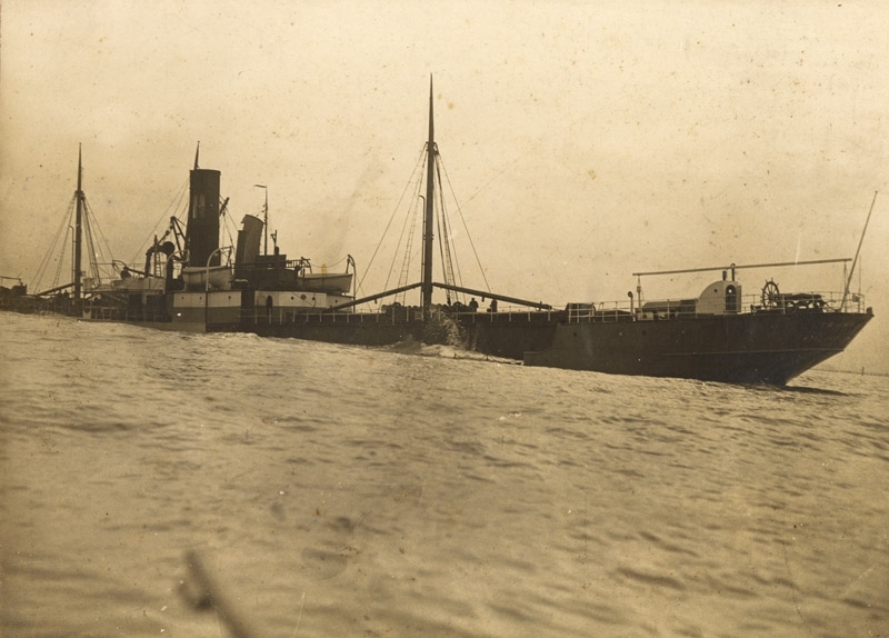 Ångfartyg, fören är under vatten, P.F.v.d. Ende, Nieuwstraat 23, Rotterdam.