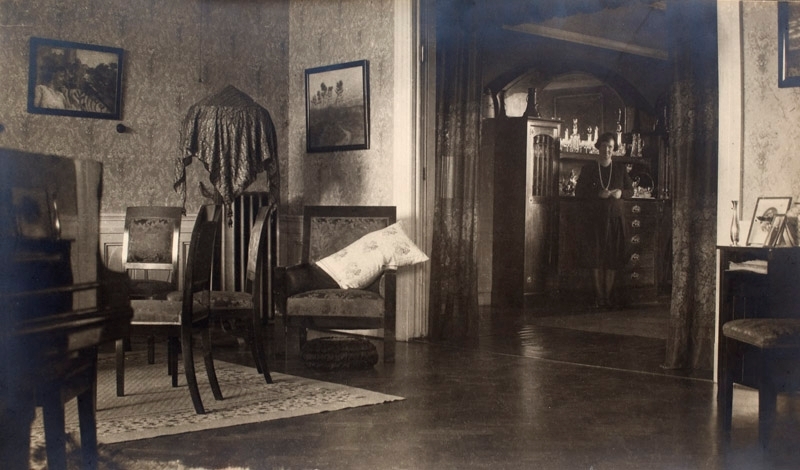 Interiör Clara Åkermans hem 20-talet, skänk, glaskaraff med glas, 65:3524.