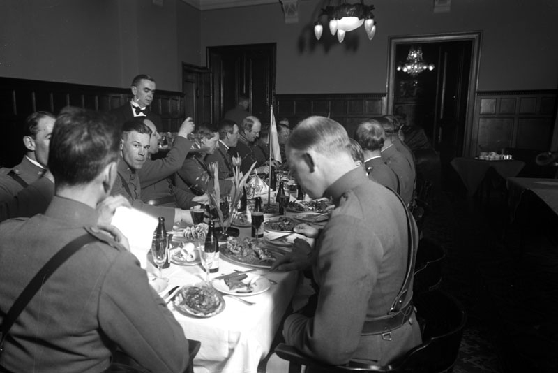 Ätande soldater i elegant rum, restaurang ? Saarbataljonen.