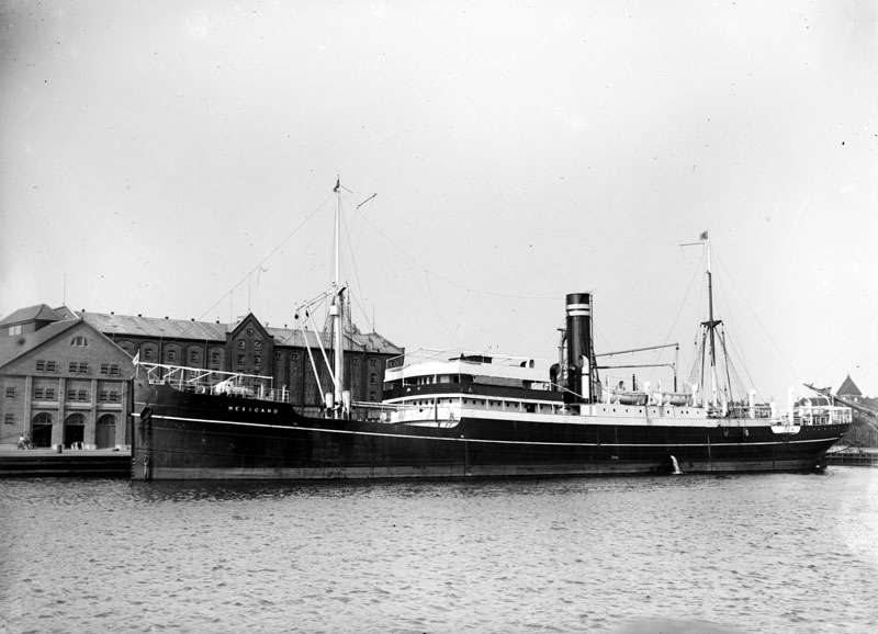 Vy över hamnen. Ett fartyg "Mexicano".
