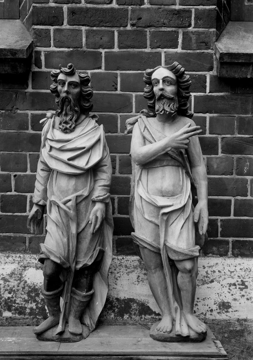Trelleborgs kyrka. Skupturer från altartavlan.