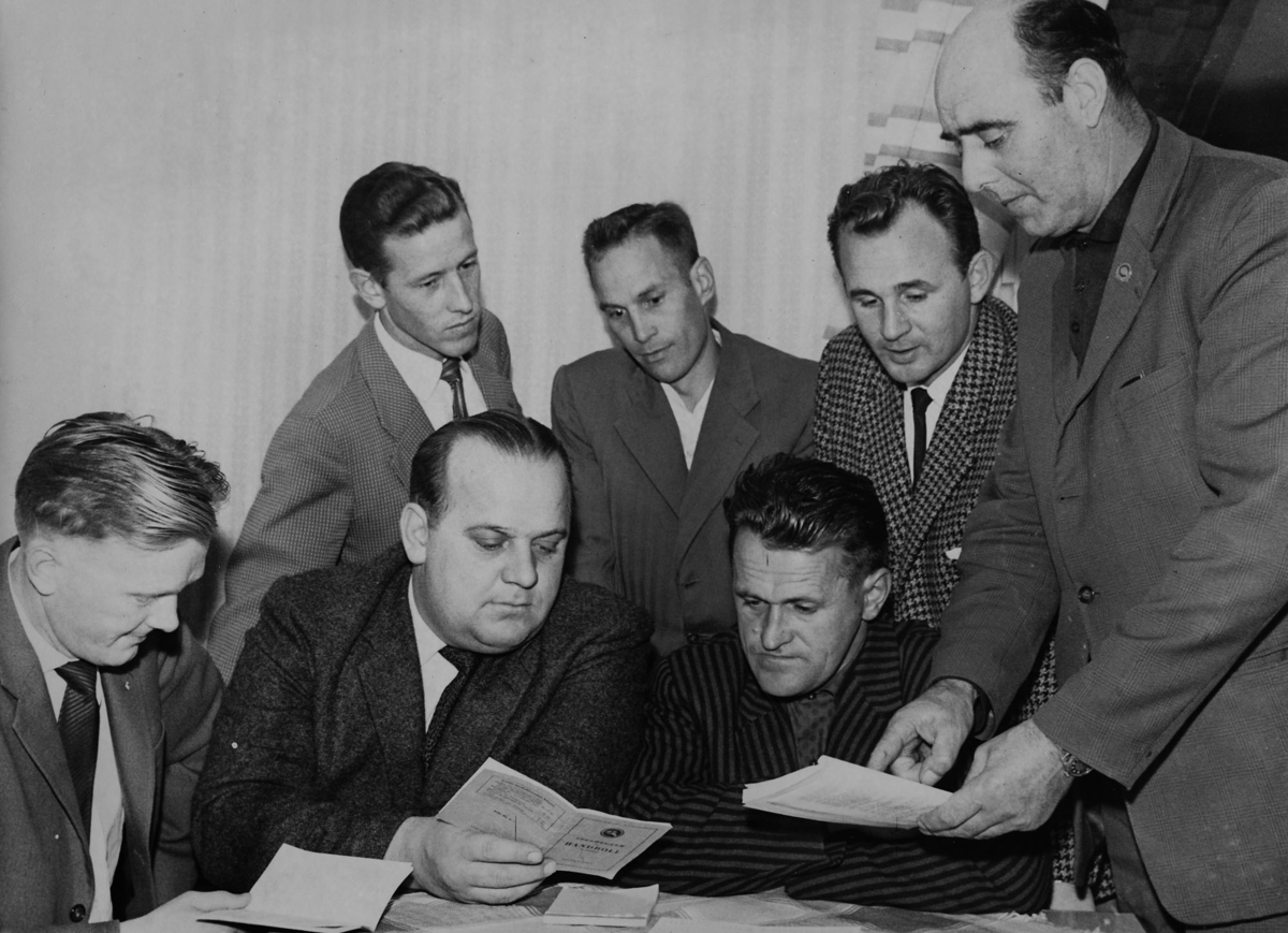 Från vänster Åke "Prästen" Olsson, Rolf Arnshed, Allan Jönsson, Uno Andersson, Sven Svensson, Arne Sjölund, ?