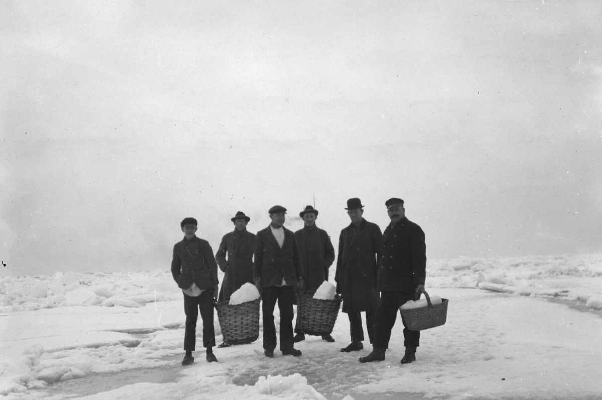 Isbrytaren II 6/3 1924, mannen i mitten kapten Eriksson, till höger generaldirektören i kungliga järnvägsstyrelsen, Granholm.