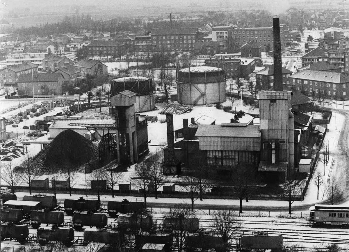 Gasverket med övre, vy från vattentornet, foto: Polyfoto Jan Borgström.