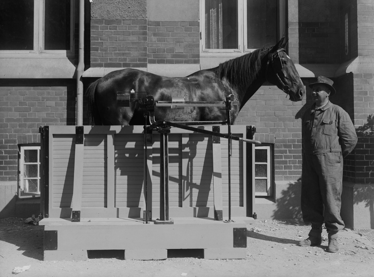 Häst på kreatursvåg. Morter Utställningsplåtar 1925.