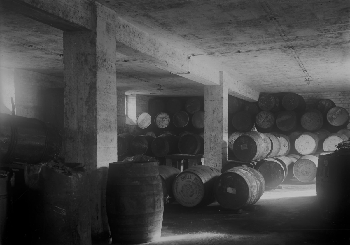 Färgfabriken Standard. Interiör, lager med tunnor.