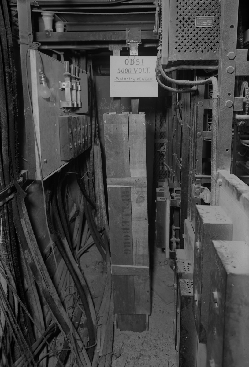 Elverket. Interiör. Skylten visar OBS!! 5000 Volt.
