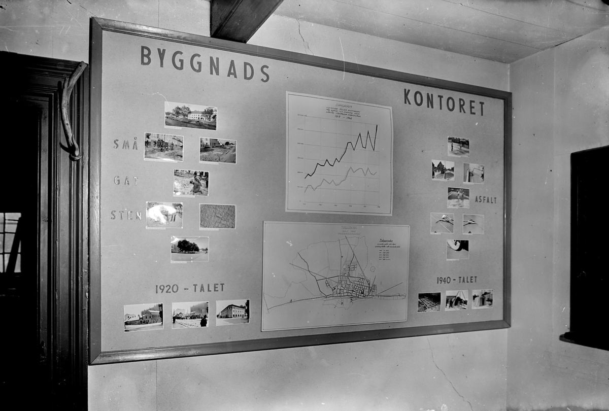 Trelleborg 75-årsjubileum 1942. Skyttsgården utställning. Skärm Byggnadskontoret.