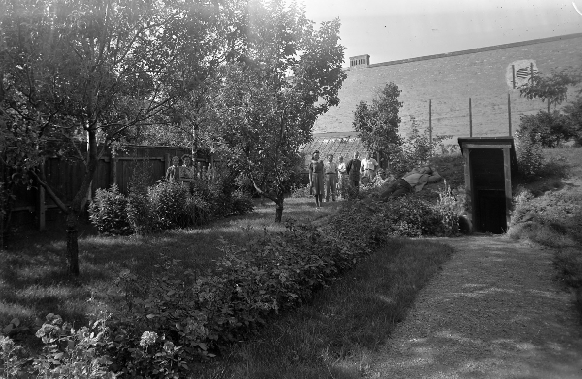 Nordisk transport. 10 ungdomar i en trädgård, samma plats som DTB-303 och 304.