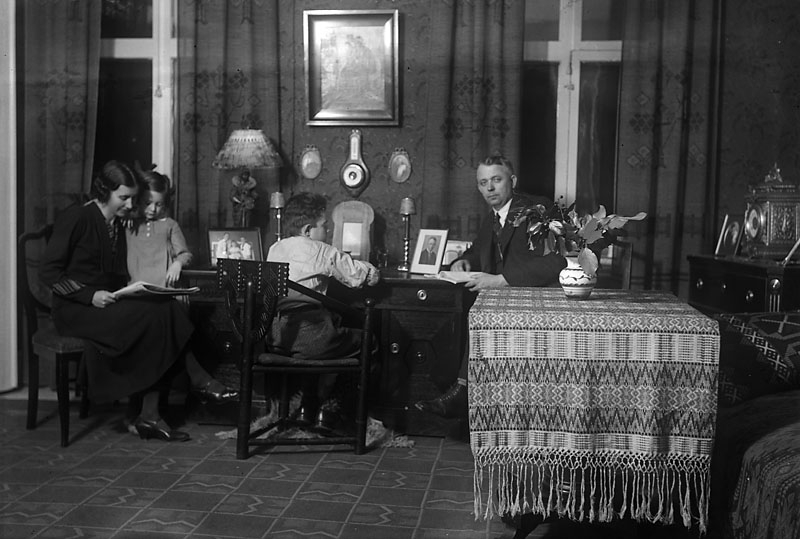 Johnssons hem? Med fru Johnsson och 2 barn & okänd man, Johnssons privata bilder