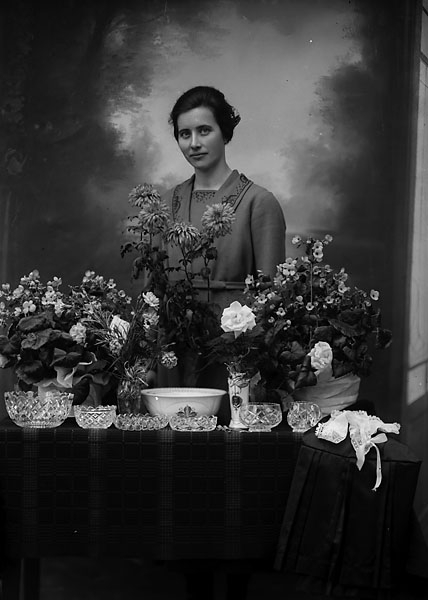Titel: Fru Johnsson, ateljébild, möjligen födelsedag, Johnsson privata bilder.