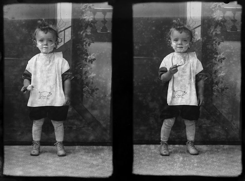 2 bilder av Per Johnsson som liten med raklödder över hela ansiktet, Johnsson privata bilder.