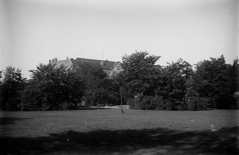 Titel: Parken, Karlmarkska palatset i bakgrunden, Johnssons privata bilder Metallutfällning.