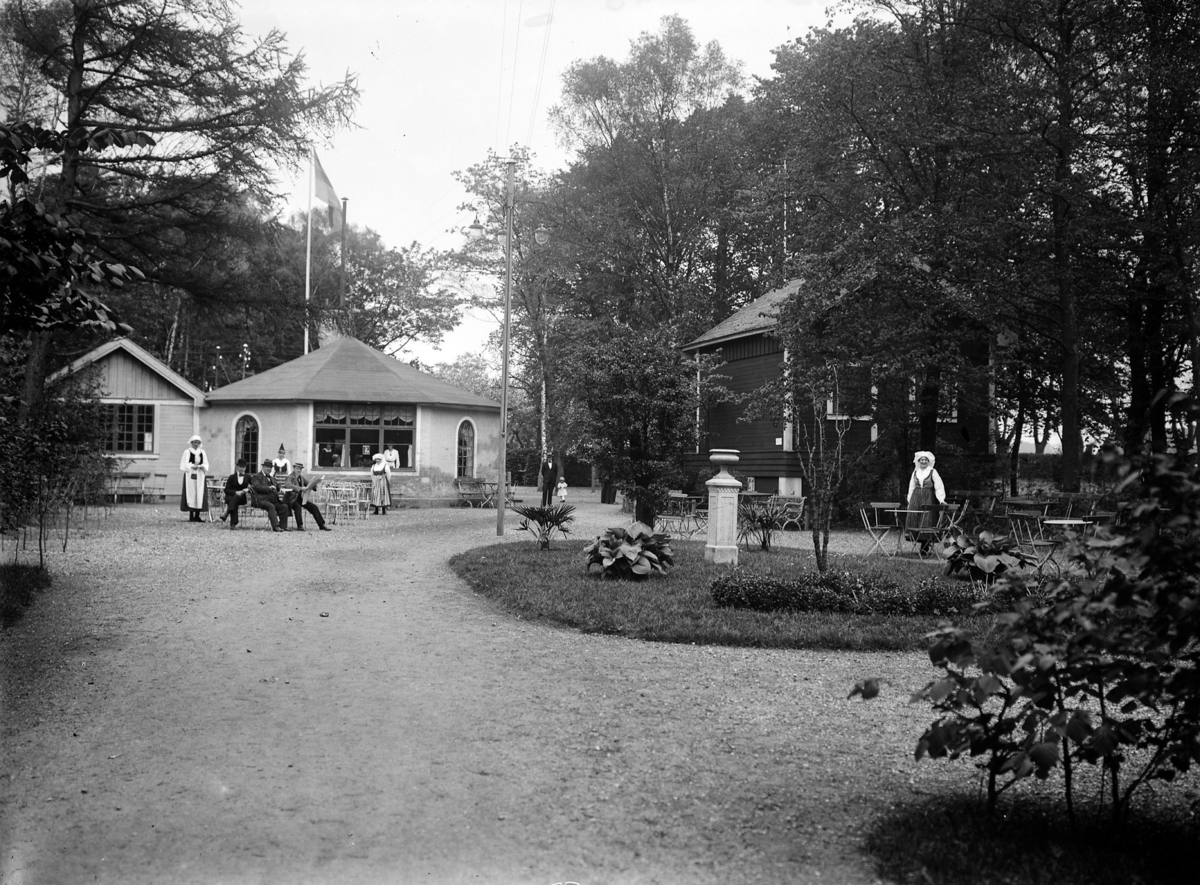 Titel: Gatubilder. Gamla Liljeborg, servering, kvinnor i folkdräkt. Samma bild som DTB- 361.