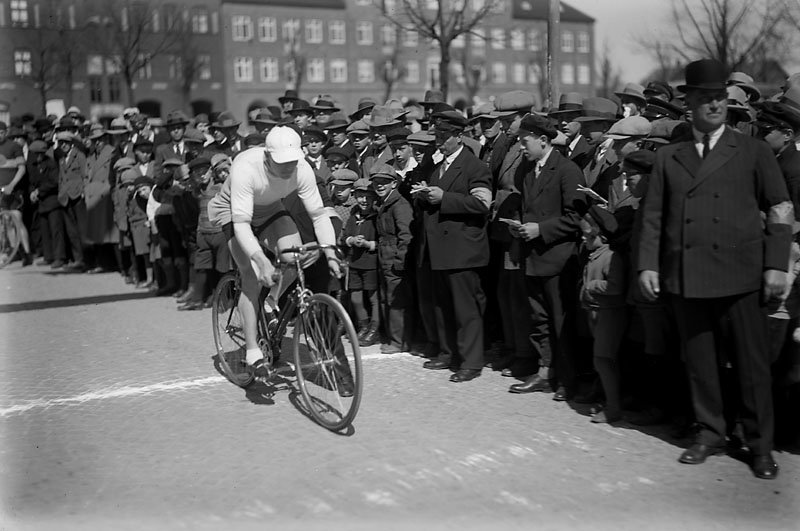 Cykellöpare, stor folkmassa möjligen Sverigeloppet