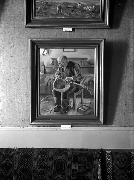 Löderups vävskola, en fin tavla med en man som flätor en korg gubbe med bikupa 1931