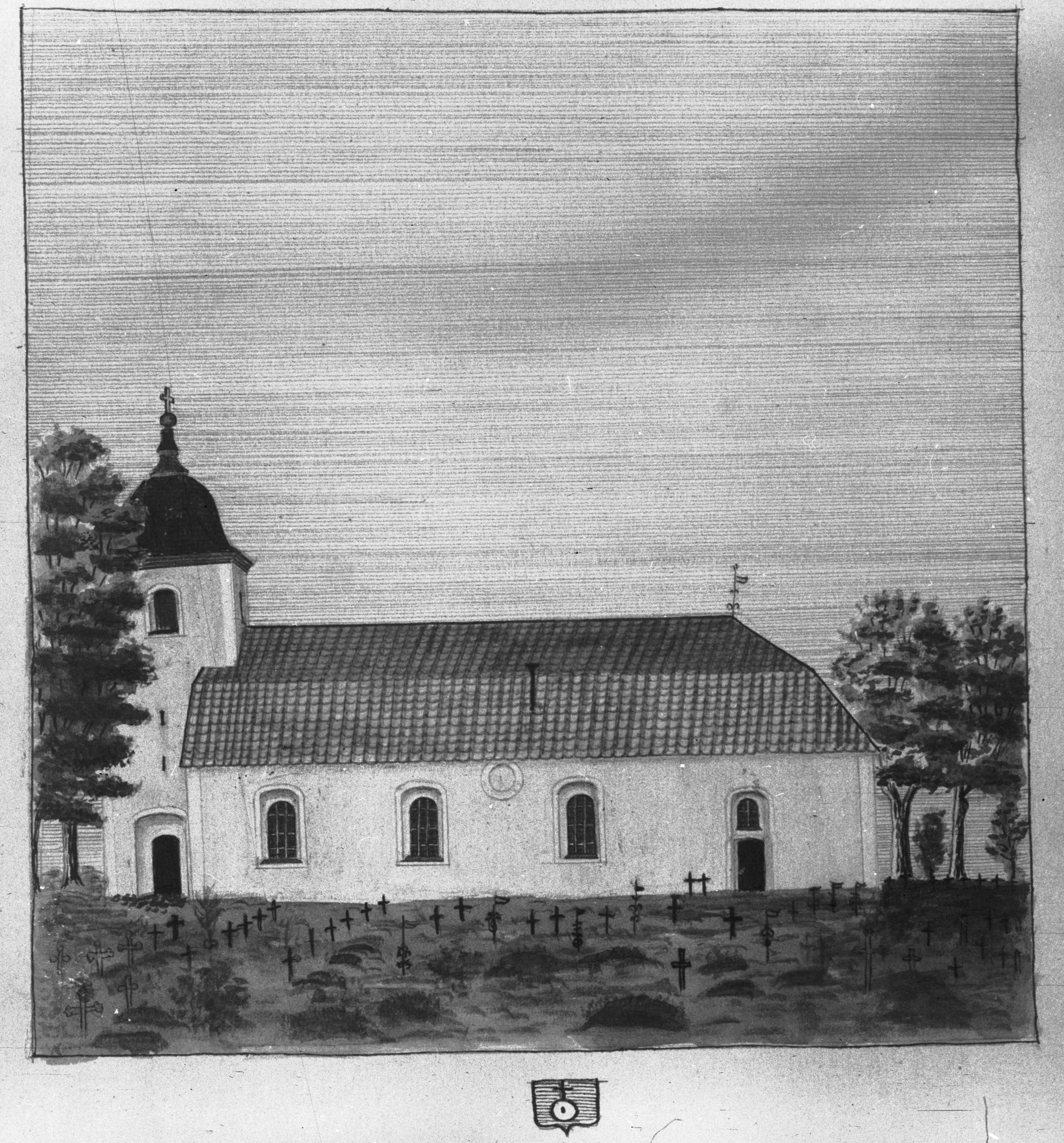 Kyrkan mot söder. Ur E. Ihrfors, Smalandia Sacra I, s. 139