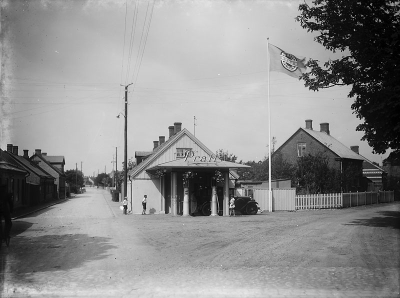 Pratts bensin väster 1929. Rakt fram ligger Stavstensvägen och Tommarpsvägen till höger. 7842.