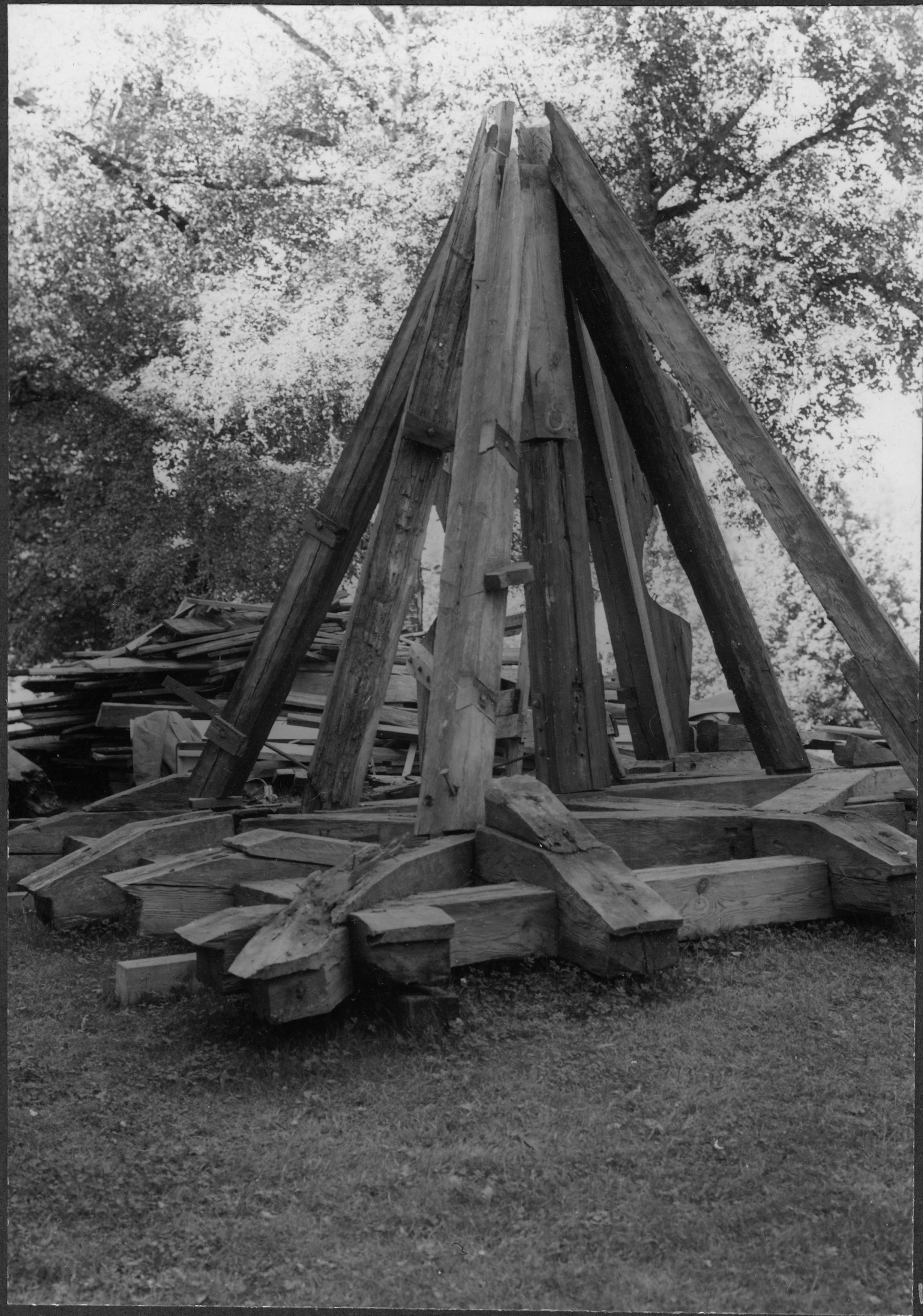 Tornhuvens träkonstruktion.