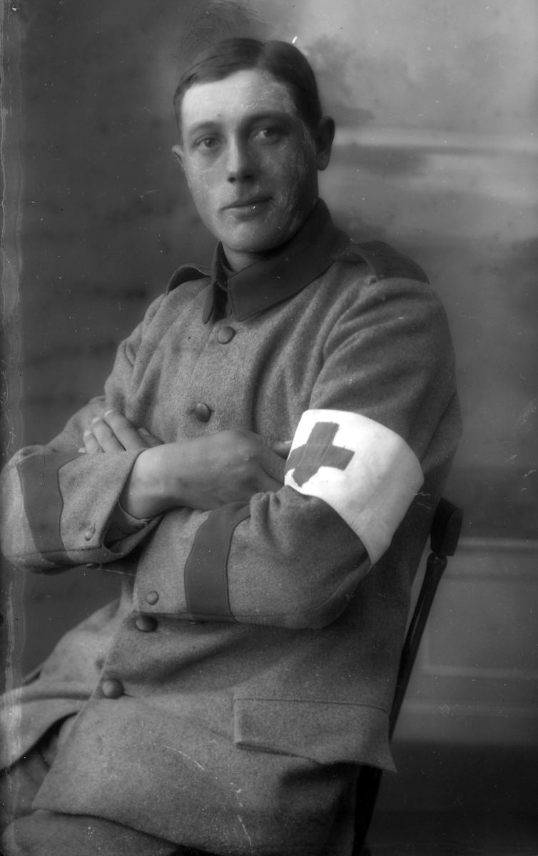 Ateljébild, man i rödakorsuniform