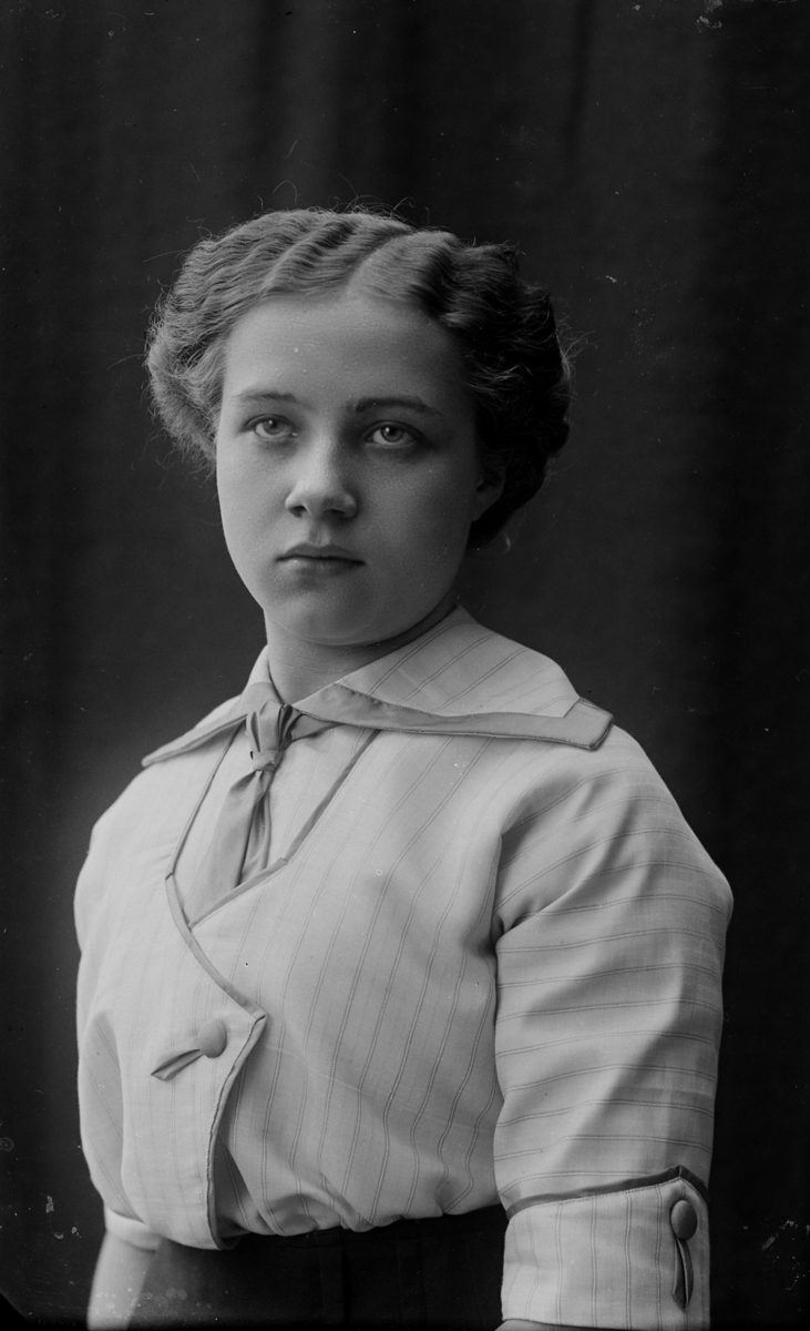 Ateljébild, kvinna Fr. Svensson, metallutfällning fläckvis.
