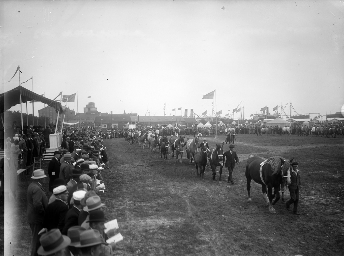 Lantbruksmöte 1931. Visning av hästar medmera. Hästar. Hästar i ring.