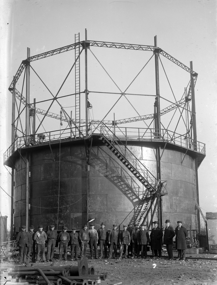 Gasverksklockorna, vid den några tjänstemän och arbetare.