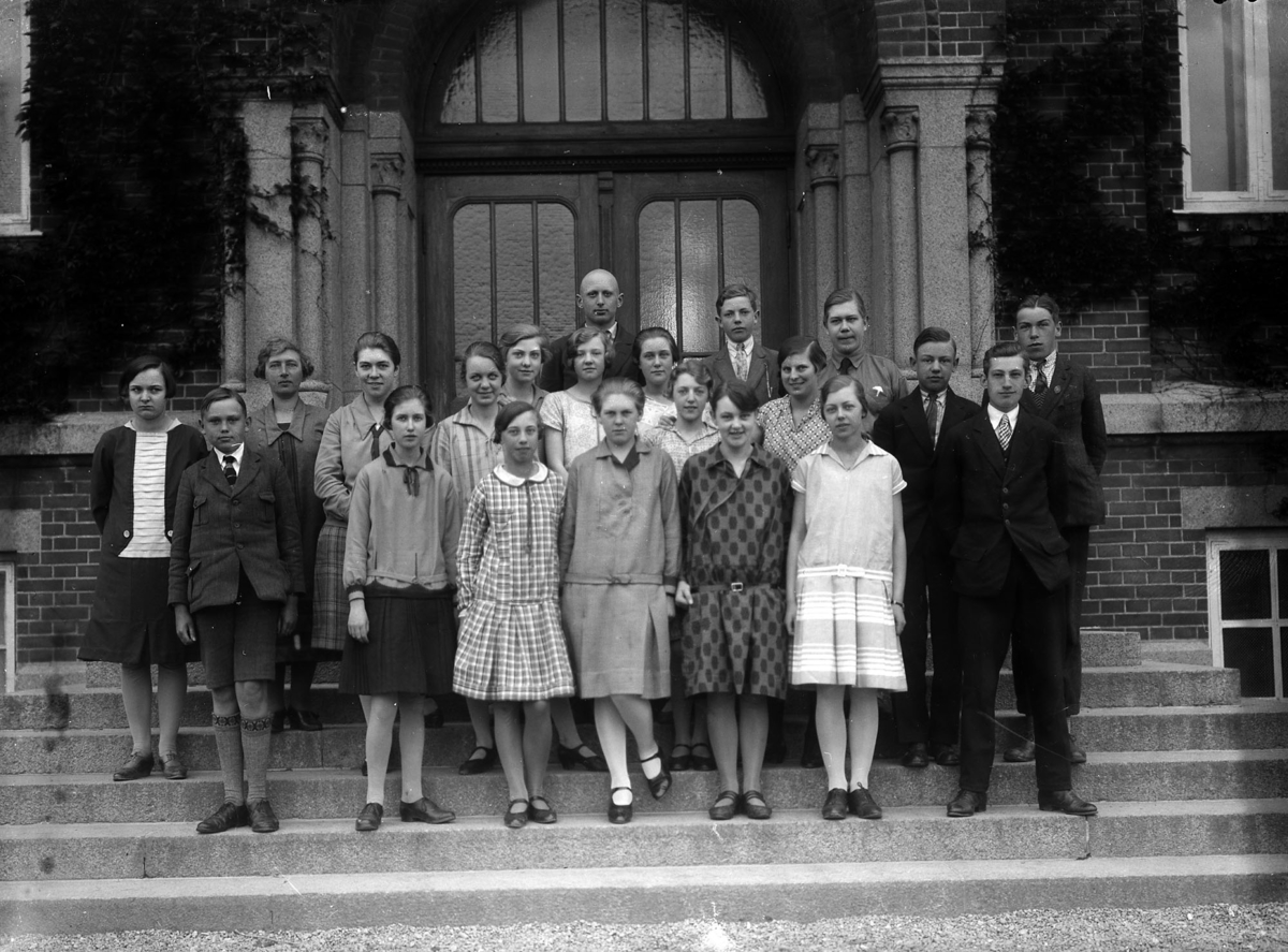 Samrealskolans klasser. Skolklass på skoltrappan.