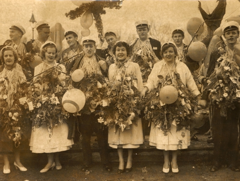 Studenter från latin- och reallinjen 1955. Dessa tog studenten något före övriga eftersom några av pojkarna skulle rycka in i lumpen. Stortorget i Trelleborg,Första raden från vänster:1 Sylvia Liljekvist, 2 Monika Höweler, 3 Rolf Henriksson, 4 GunPahlman, 5 Elsie Nilsson,Rune Schlyter