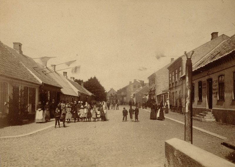 Östra delen av Algatan, Husen t.v. äro från vänster 1 Fabrikör Fritz Steiner hus å tomt 11A(49) 2 Förgyllare Joh Lund hus å tomt 10(51) 3 Handl B Rosenfelt hus å tomt 9 (53) 4 Handl H Wenbergs hus å tomt 8 (55) 5 Handl A G Kleins hus å tomt 7 (57)