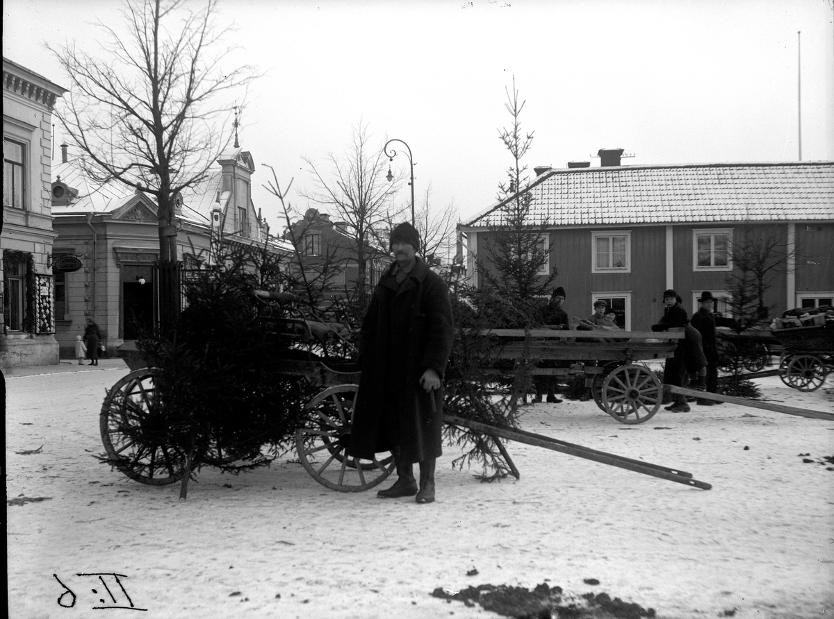 Julgransmarknad på lilla torget, 1910-tal. Fotograf: E.Sörman Fotokopia finns.