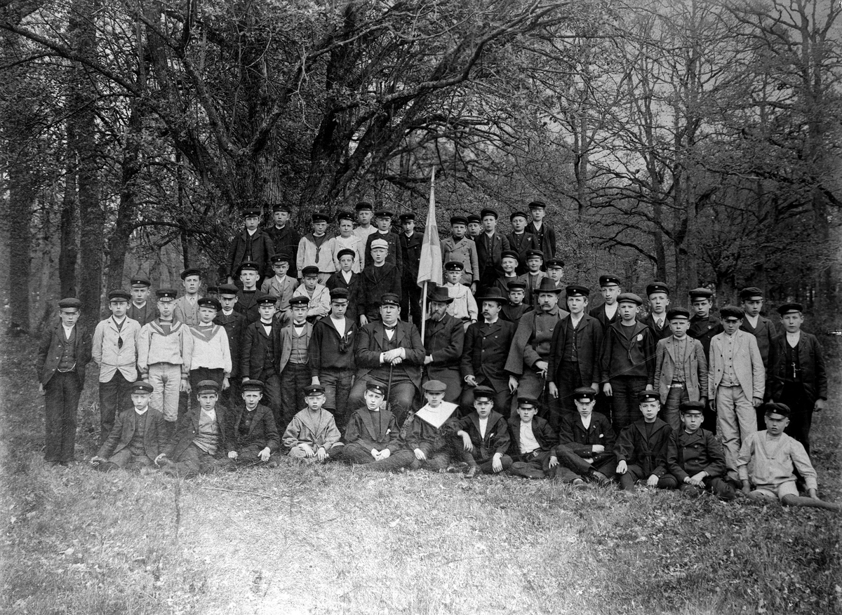 Pedagogins elever på utflykt till Djurgården. Reproduktion E Sörman.