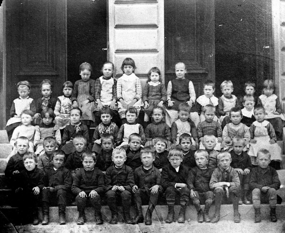 Skolbarn, grupp. Reproduktion av E Sörman.