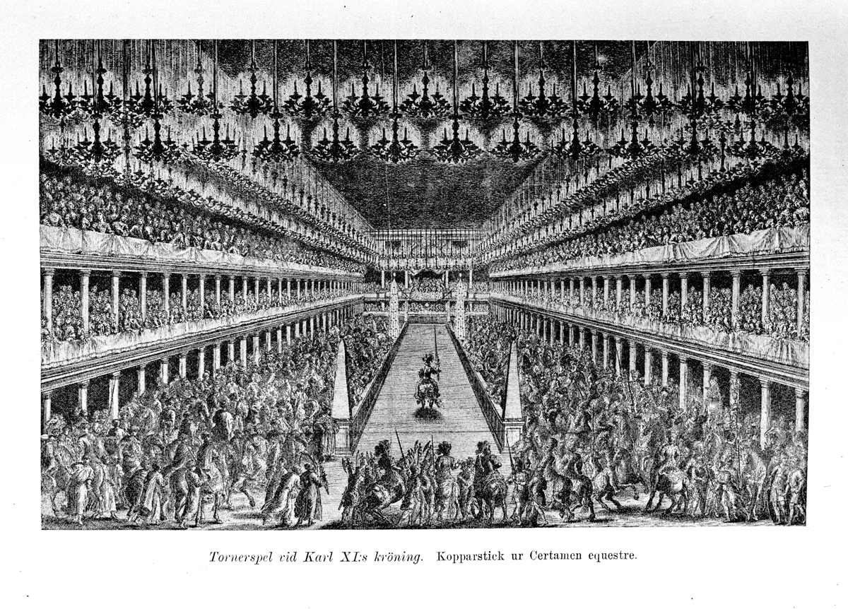 Tornerspel vid Karl XI:s kröning. Kopparstick ur Certamen equestrae.