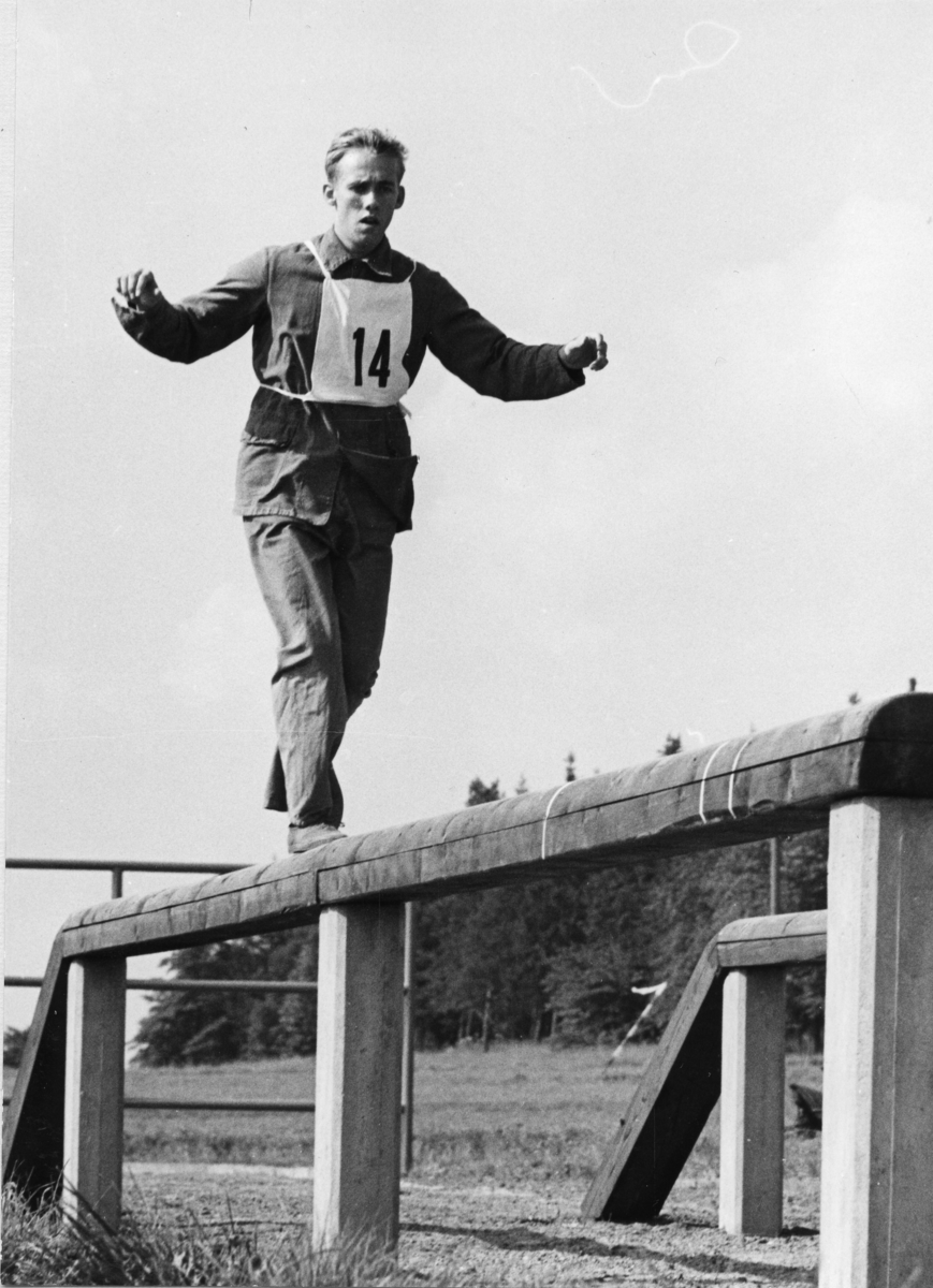 Femkamp. Balansgång på hinderbana. Milomästerskap, P 6.