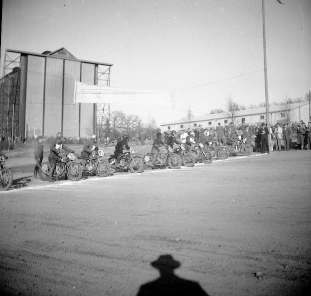 Motorcrosstävling på A 6 övningsfält. Starten.