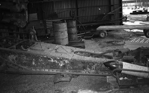 Haubits m/1917. 21 cm, före renovering. Lavett.