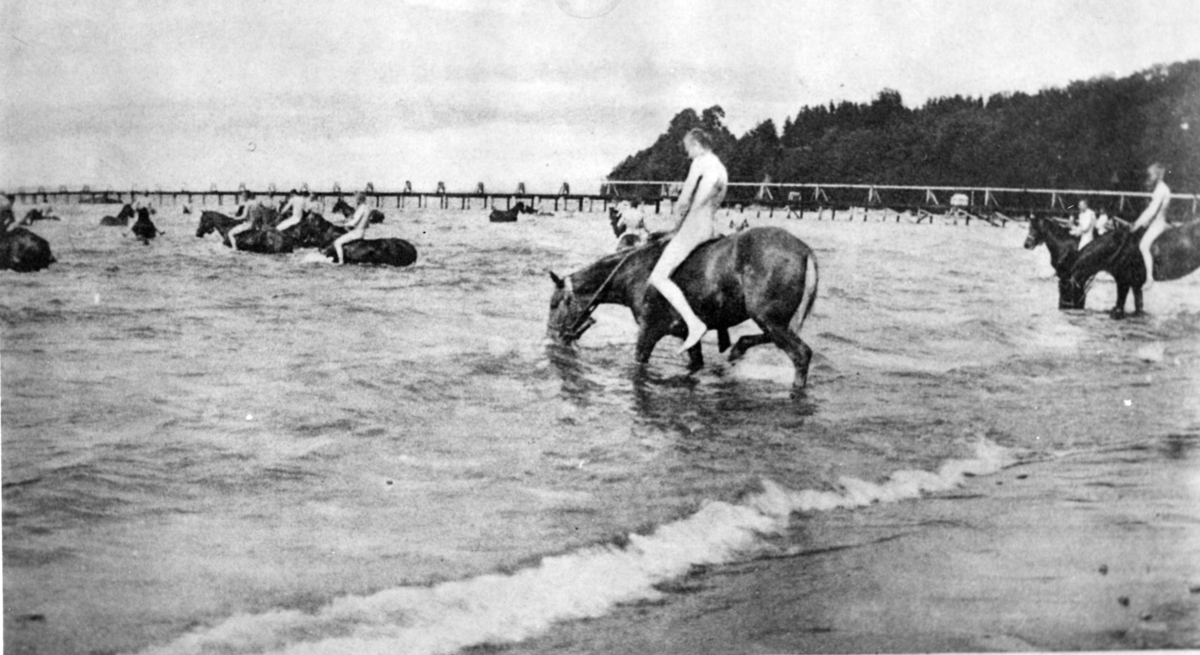 Hästar, badning. Vättern, nedanför Backgården A 6.