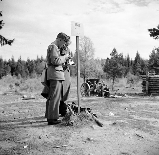 Batteriplats (B 48) i Skillingaryd. I bakgrunden 7,5 cm kanon m/02.
