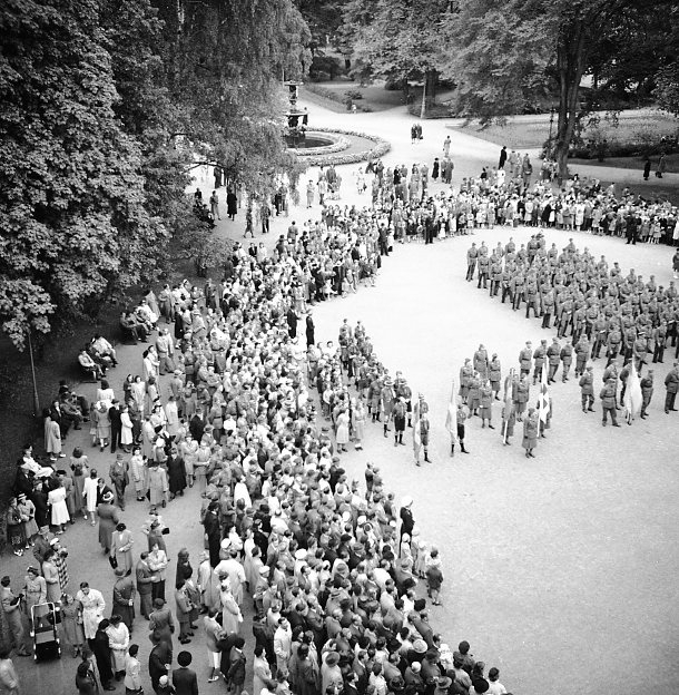 Högtidlighet i Rådhusparken i Jönköping. Kompani ur A 6 samt frivilligorganisationer.