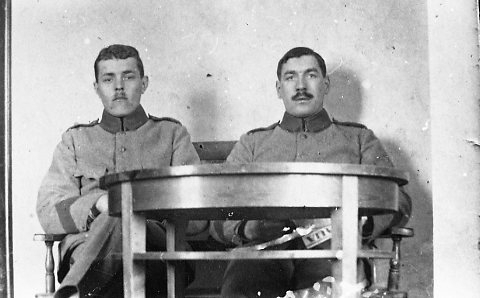 Titel: Soldater (2) vid ett bord. Avfotografering.