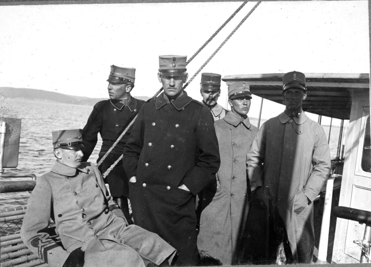 Officerare (6 man), Karlsborg. Ombord på båt.