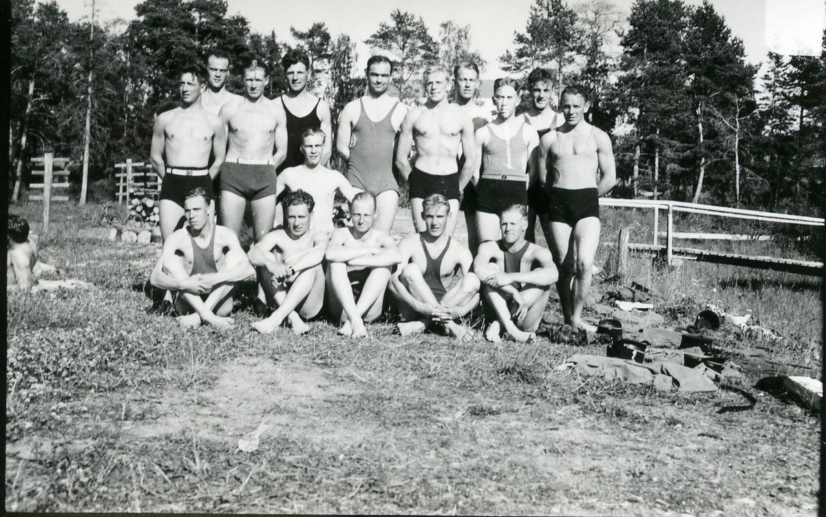 Soldater i baddräkt.