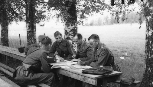 Thorson, överste, A 6 inspekterar kårmätbatteriet.