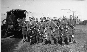 Soldater vid lastbil. I. eller II. kårdivisionen, A 6.