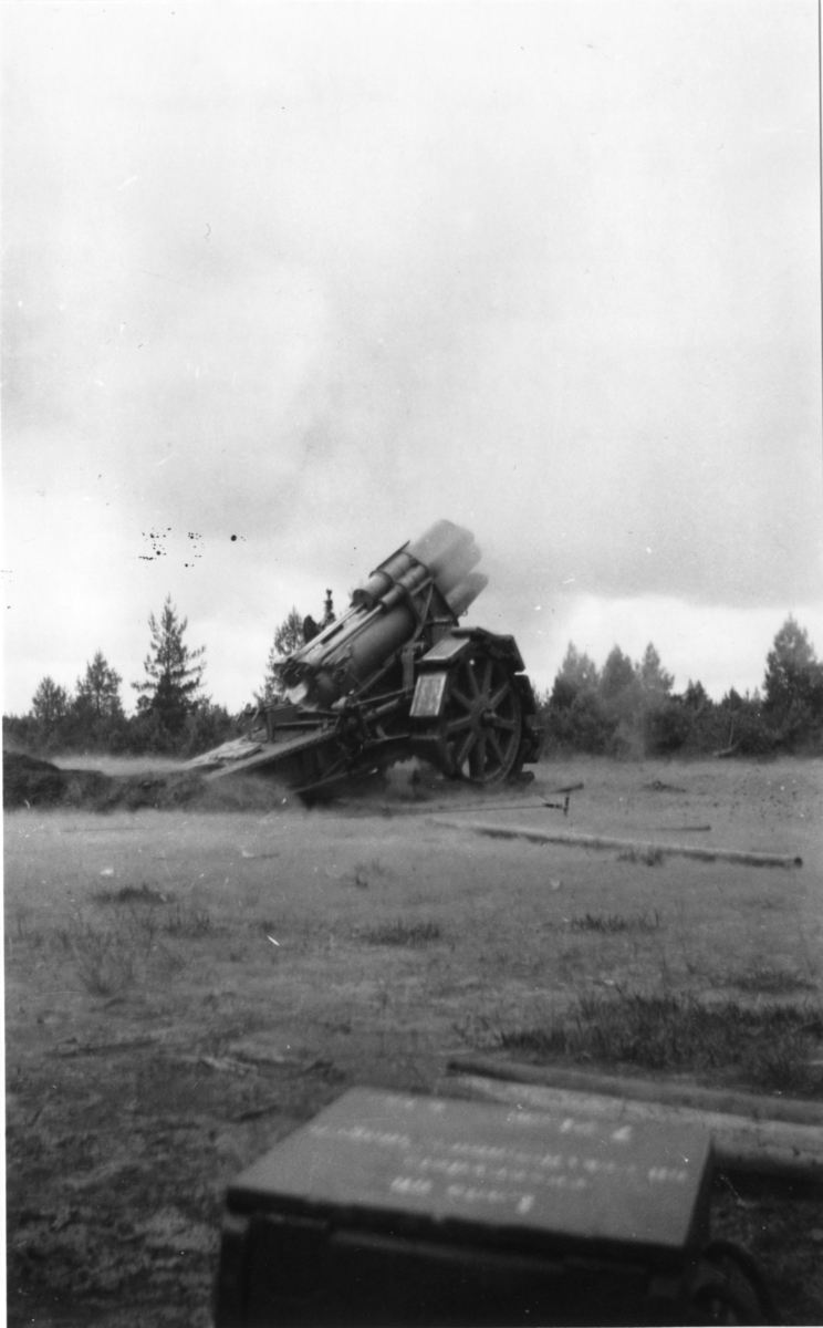Haubits m/1917. 21 cm. Skjutning vid B 18, i Skillingayd.